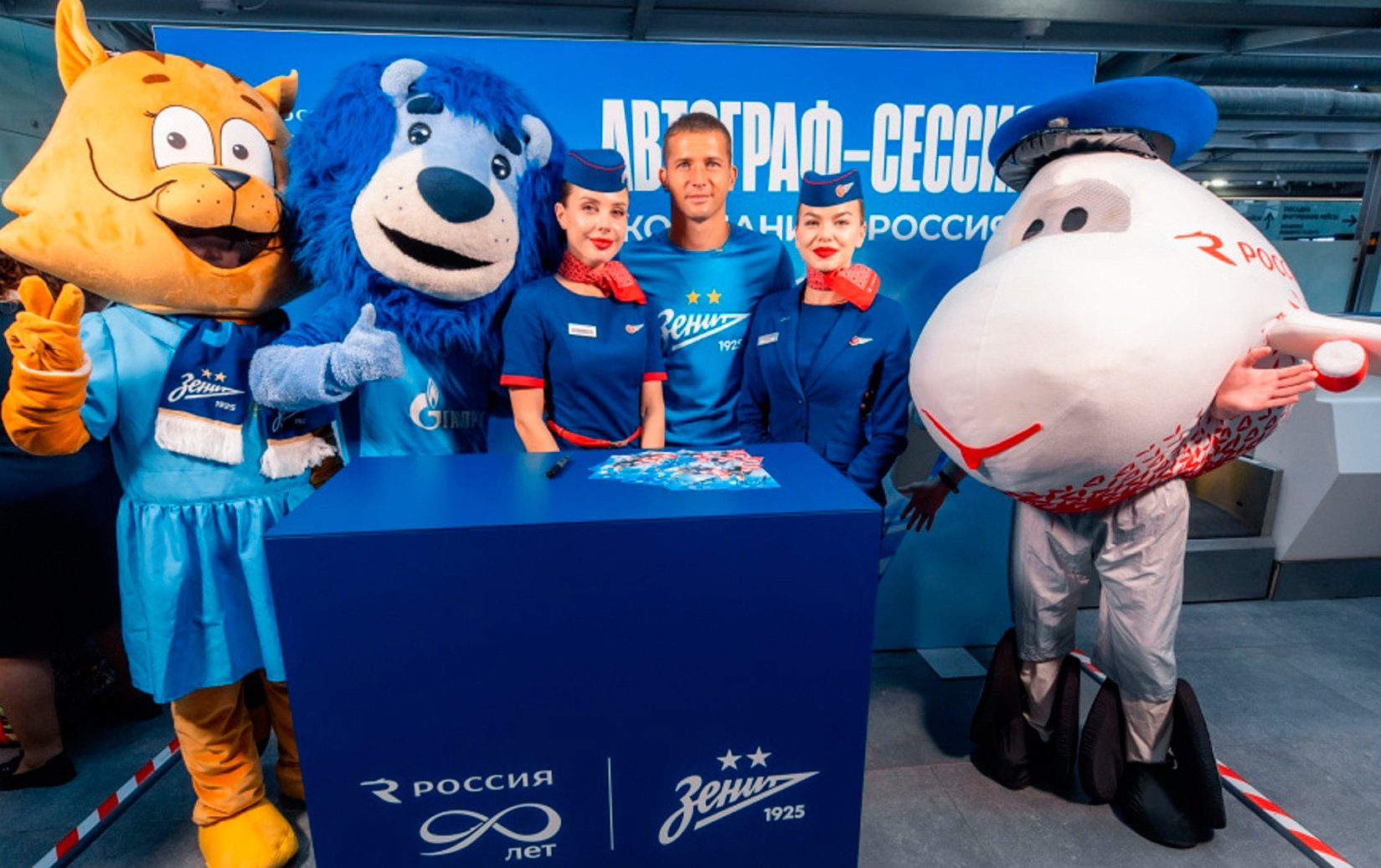 Вратарь сине-бело-голубых попробовал себя в роли работника авиаотрасли и зарегистрировал путешественника на рейс из базового аэропорта авиакомпании «Россия» в Санкт-Петербурге. В зоне вылета путешественников ждала насыщенная интерактивная программа. Абсолютно у всех пассажиров «России» появилась возможность сфотографироваться с вратарем сине-бело-голубых и получить автограф именитого вратаря. Возле стоек регистрации была предусмотрена специальная зона в праздничном оформлении, где можно запечатлеть момент – сделать фотографии с талисманом «Зенита» Синегривым львом, самолетом «России» и желтым котом – символом «Пулково», что особенно понравилось юным путешественникам.